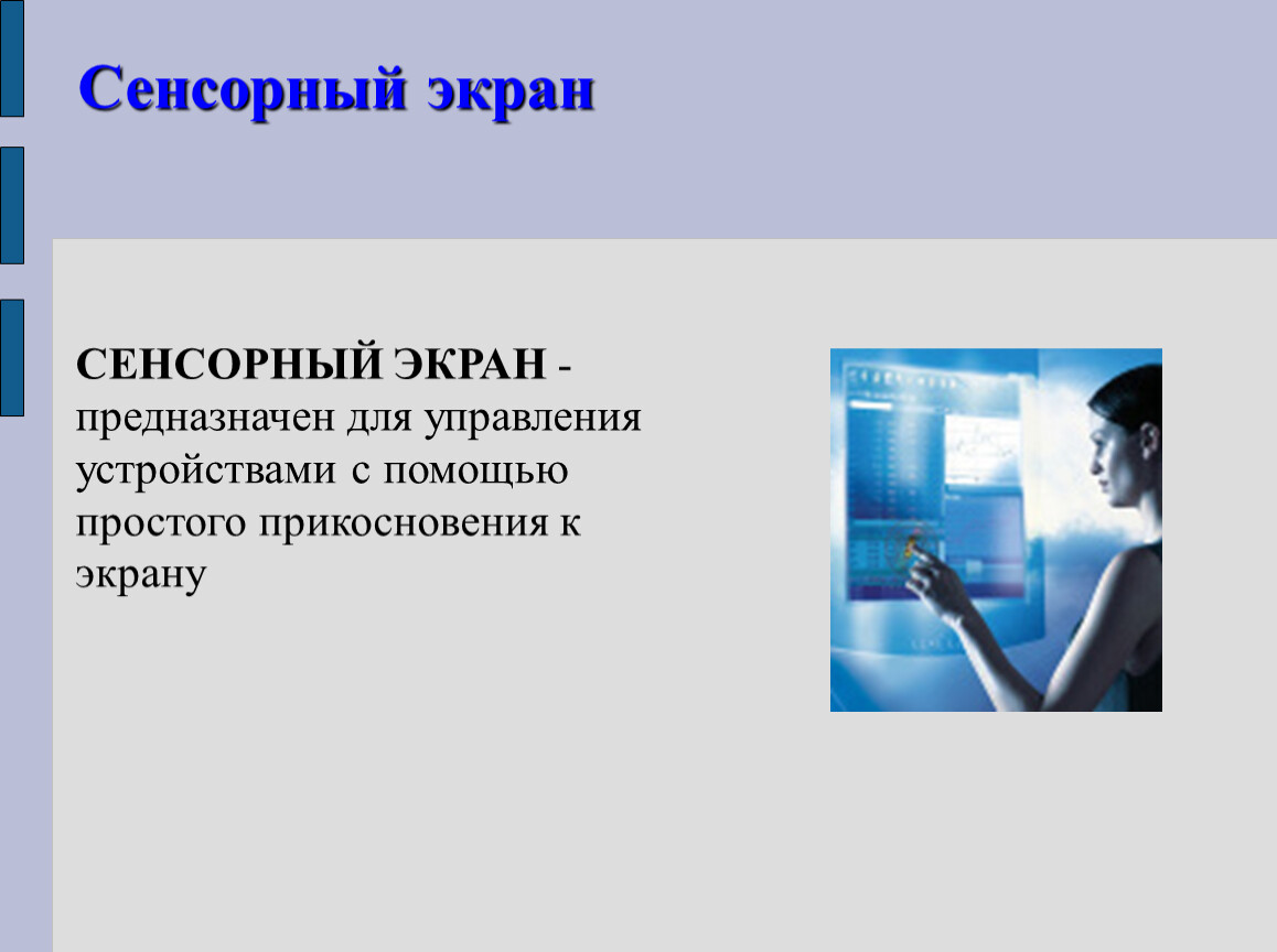 СЕНСОРНЫЙ ЭКРАН - предназначен для управления устройствами с помощью простого прикосновения к экрану