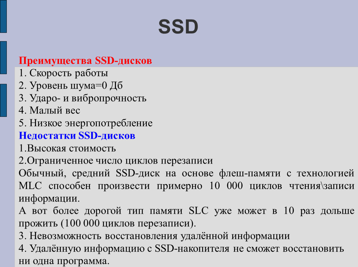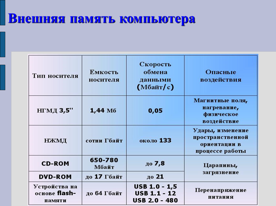 Механическая | 100 млн. | Ввод информации осуществляется длительное время |