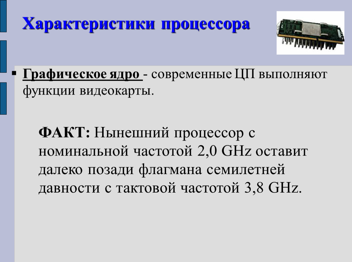 Графическое ядро - современные ЦП выполняют функции видеокарты.