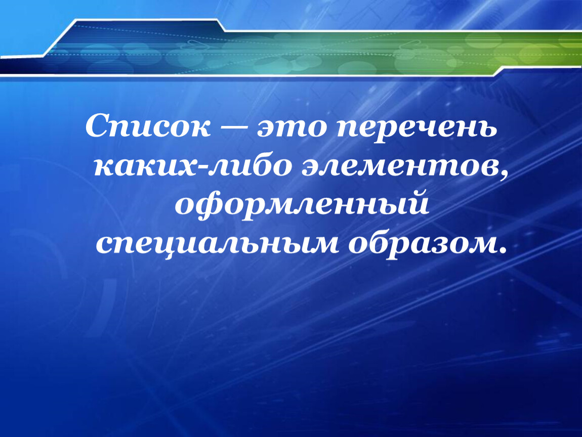 2.если элементы списка достаточно лаконичны (состоят из нескольких слов), они начинаются со строчной буквы и завершаются точкой с запятой; последний элемент завершается точкой;