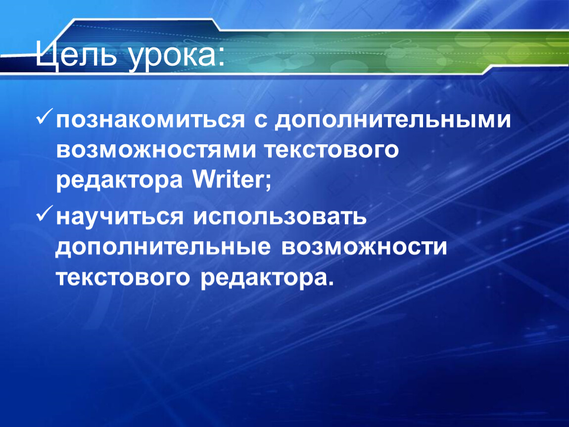 познакомиться с дополнительными возможностями текстового редактора Writer;