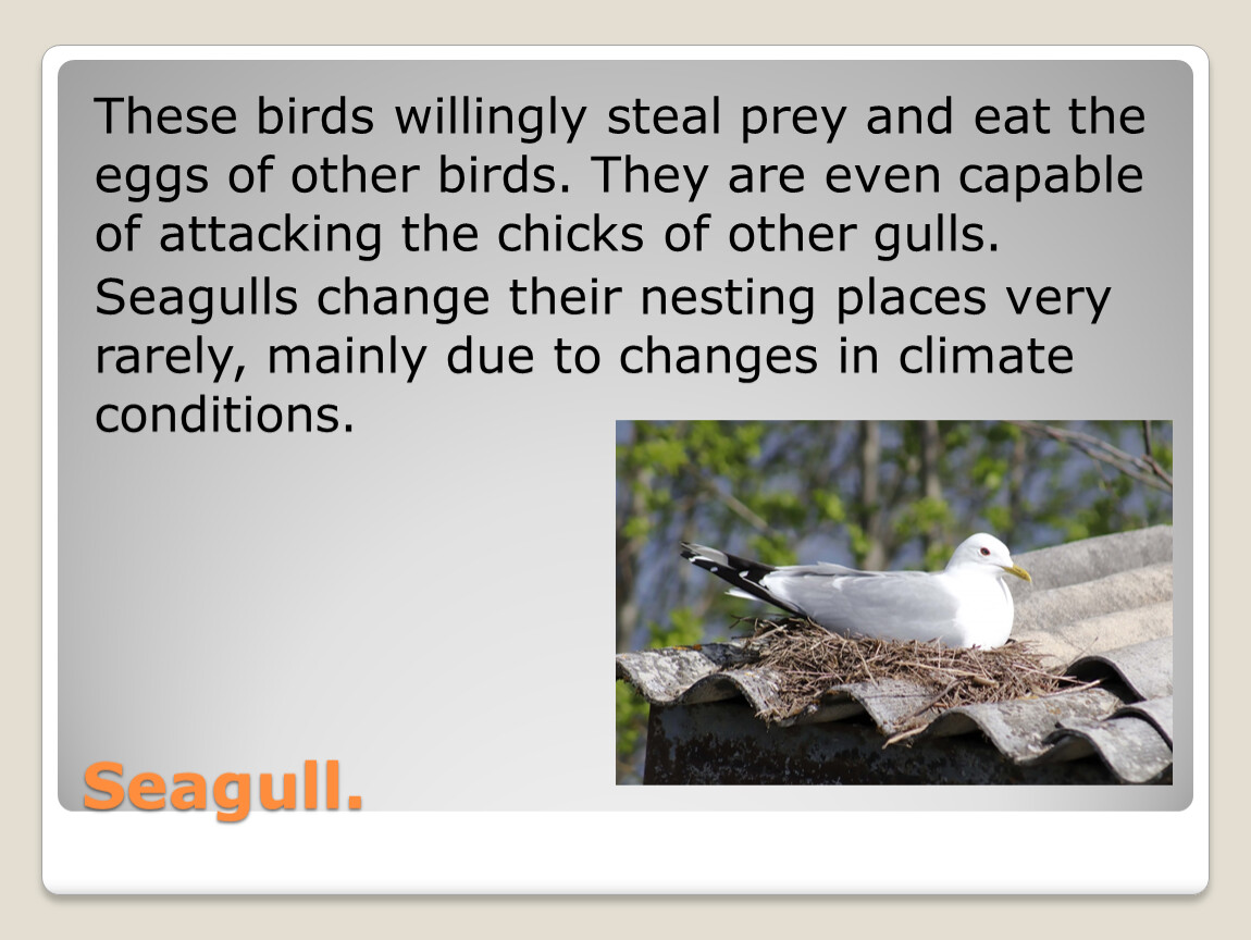 Seagulls change their nesting places very rarely, mainly due to changes in climate conditions.