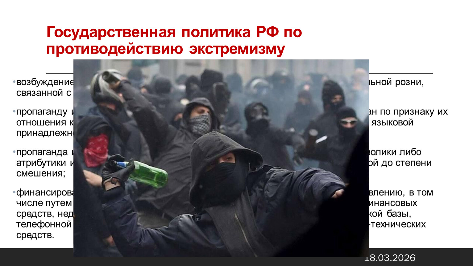 неотвратимость наказания за осуществление экстремистской деятельности.