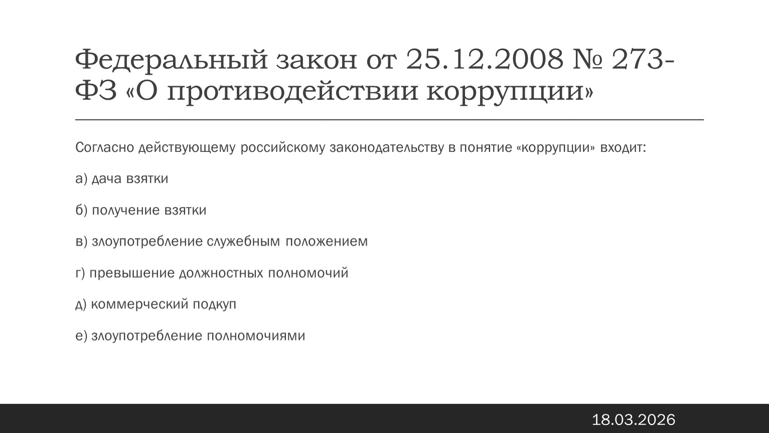 Федеральный закон от 25.12.2008 № 273-ФЗ «О противодействии коррупции»