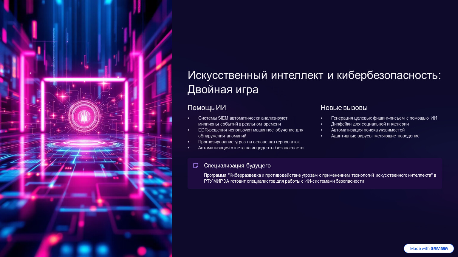 Программа "Киберразведка и противодействие угрозам с применением технологий искусственного интеллекта" в РТУ МИРЭА готовит специалистов для работы с ИИ-системами безопасности