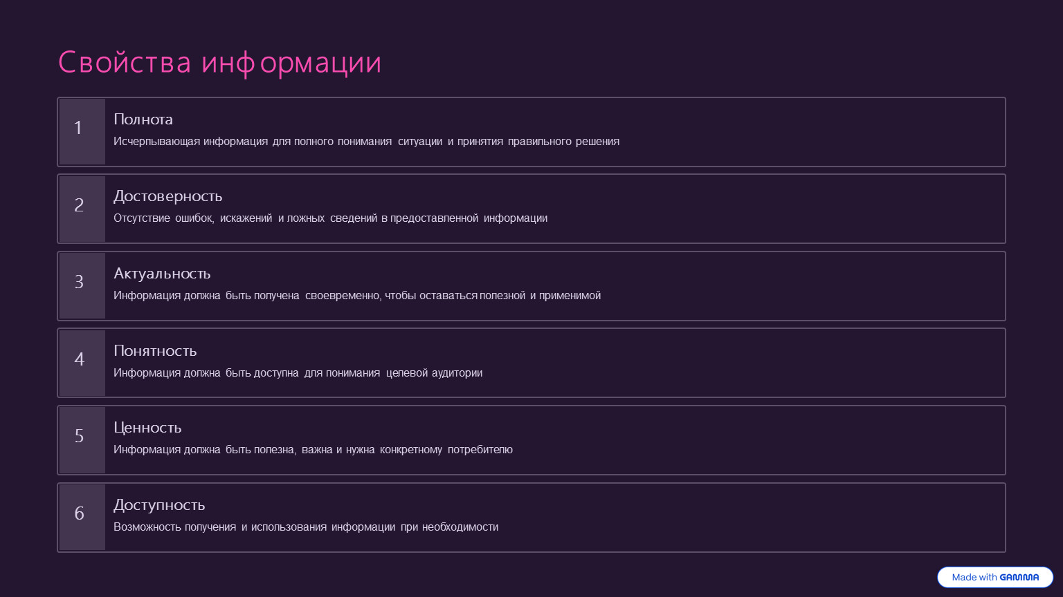 Свойства информации