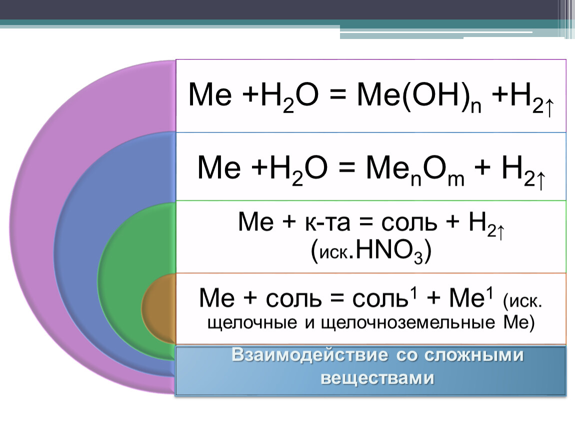 Р-ции замещения в р-ре | Ag, Cu, Zn, Cd, Mo, V | CuO CuSO4 Cu |
