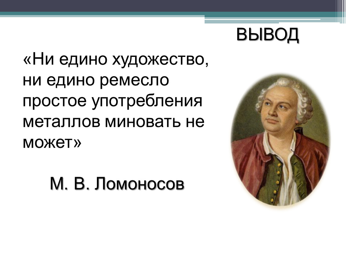 «Ни едино художество, ни едино ремесло простое употребления металлов миновать не может»