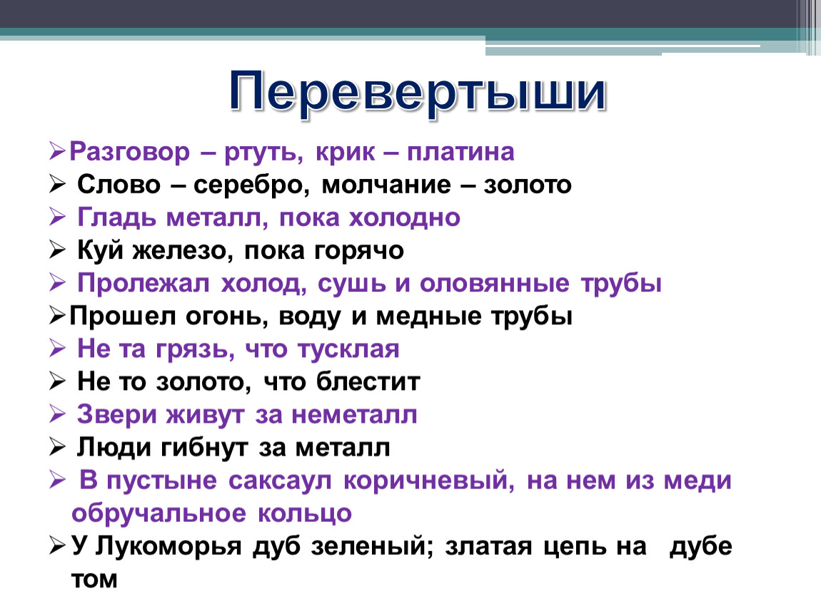 Металлы в произведениях писателей, поэтов, народном фольклоре