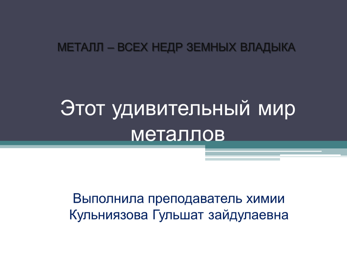 МЕТАЛЛ – ВСЕХ НЕДР ЗЕМНЫХ ВЛАДЫКА