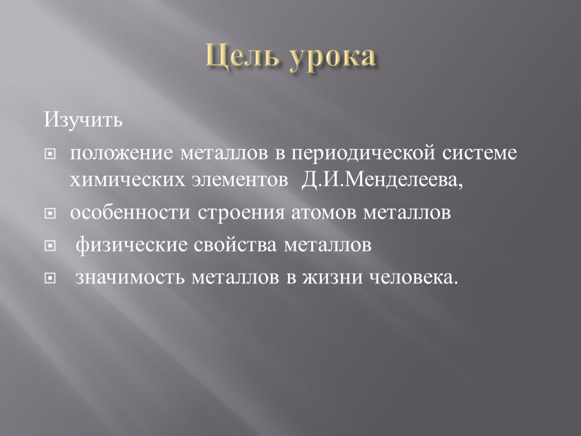 положение металлов в периодической системе химических элементов Д.И.Менделеева,