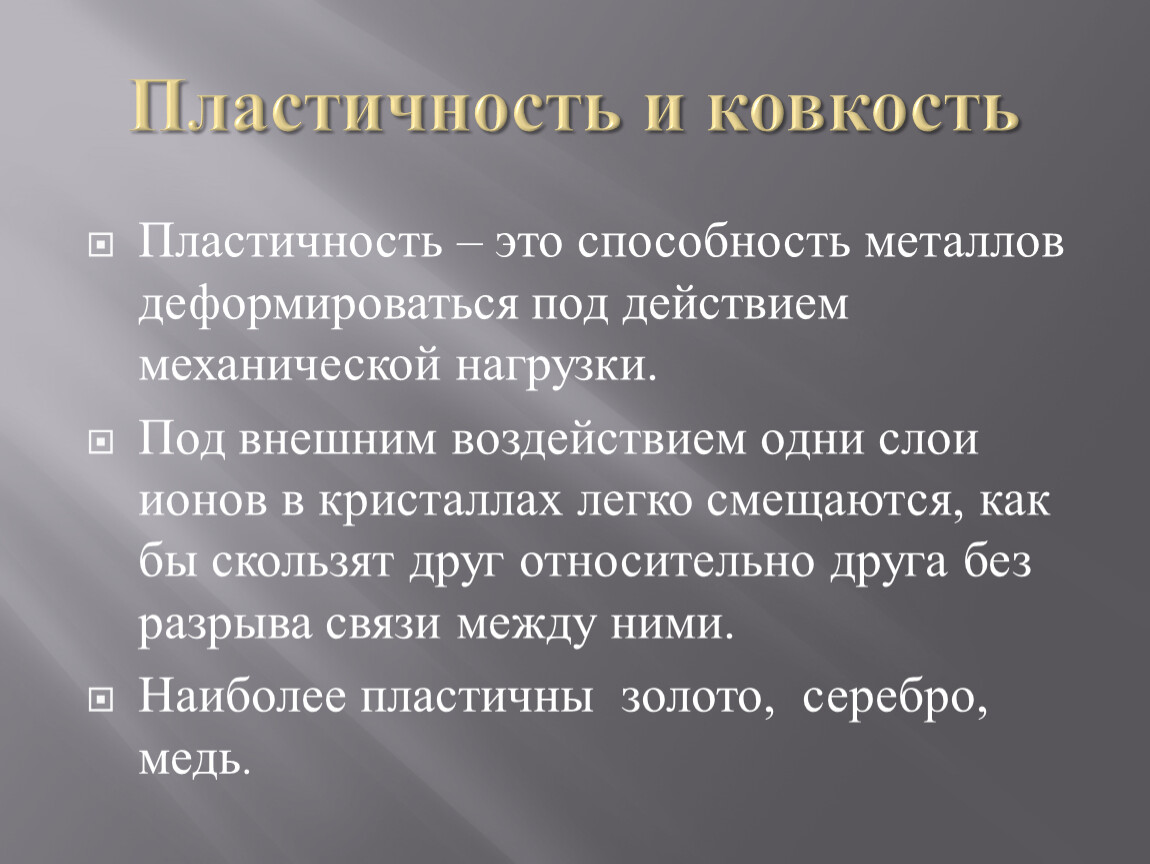 Пластичность – это способность металлов деформироваться под действием механической нагрузки.