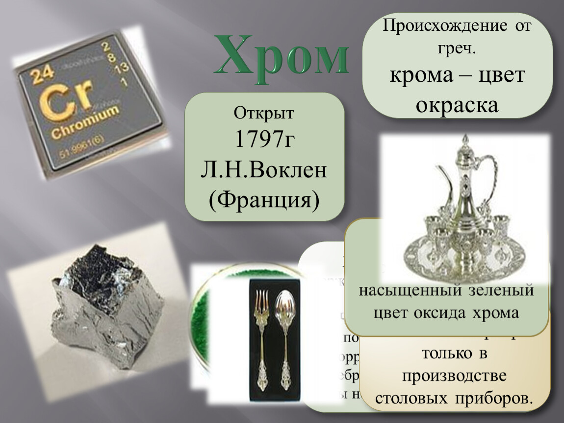 Хрому удалось вытеснить серебро только в производстве столовых приборов.