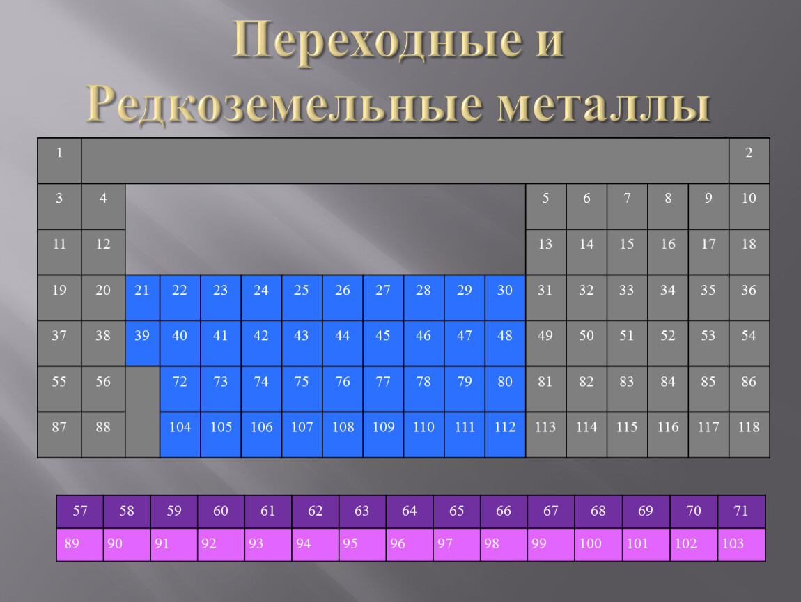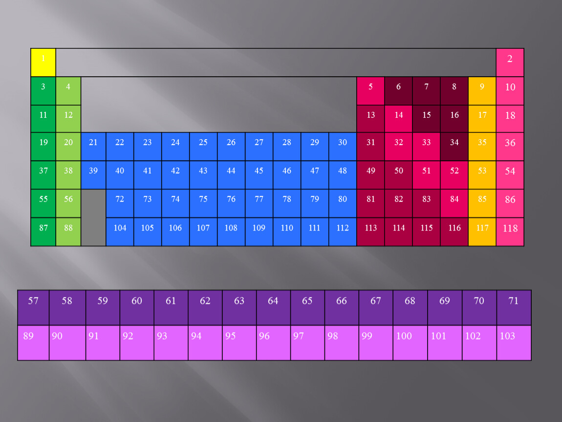 Два нижних ряда металлы которые носят название редкоземельных элементов - лантаноиды и актиноиды.