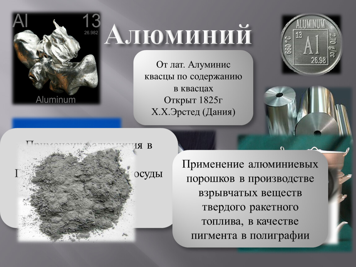 Применение алюминиевых порошков в производстве взрывчатых веществ твердого ракетного топлива, в качестве пигмента в полиграфии