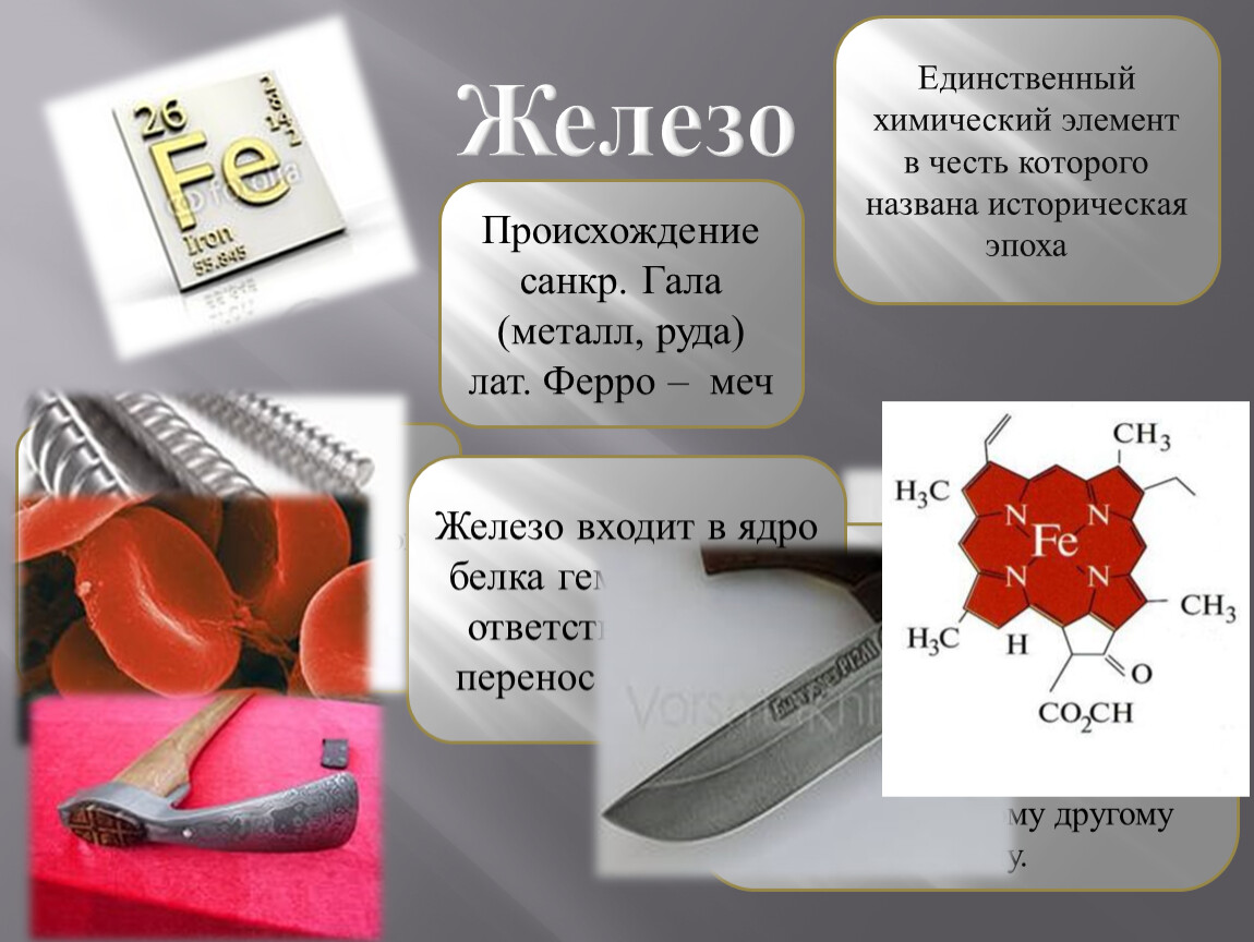 Железо входит в ядро белка гемоглобина , ответственного за перенос кислорода.