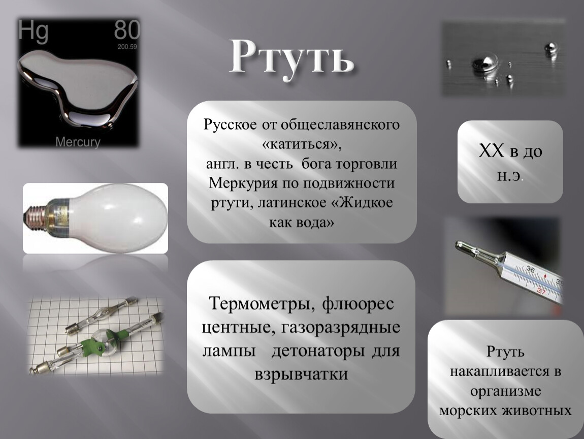 англ. в честь бога торговли Меркурия по подвижности ртути, латинское «Жидкое как вода»