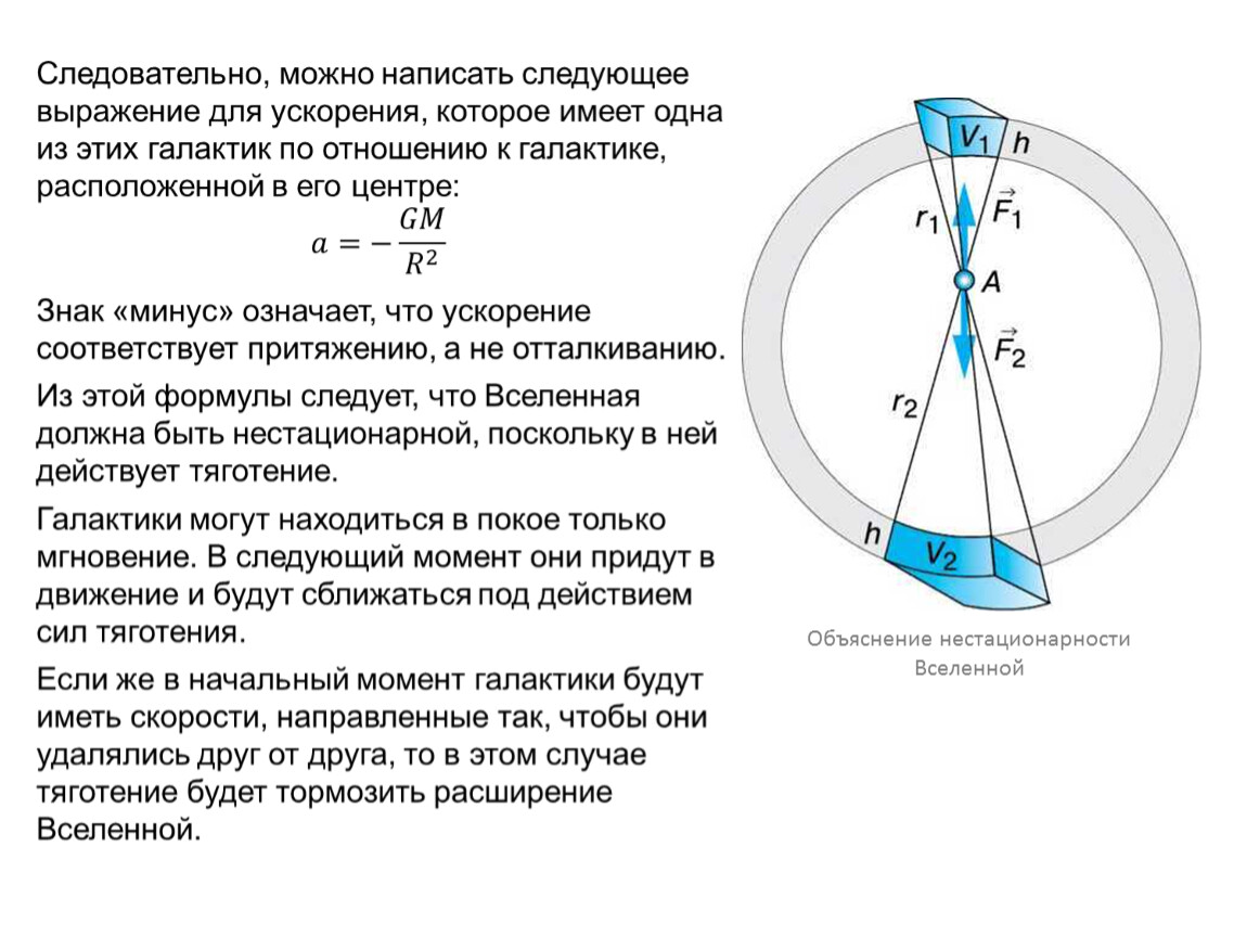 Для того чтобы уравновесить силы тяготения, он предположил, что кроме них во Вселенной существует сила отталкивания.