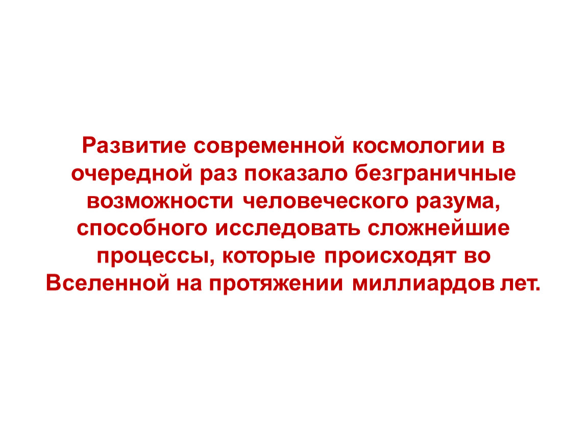 Развитие современной космологии в очередной раз показало безграничные возможности человеческого разума, способного исследовать сложнейшие процессы, которые происходят во Вселенной на протяжении миллиардов лет.