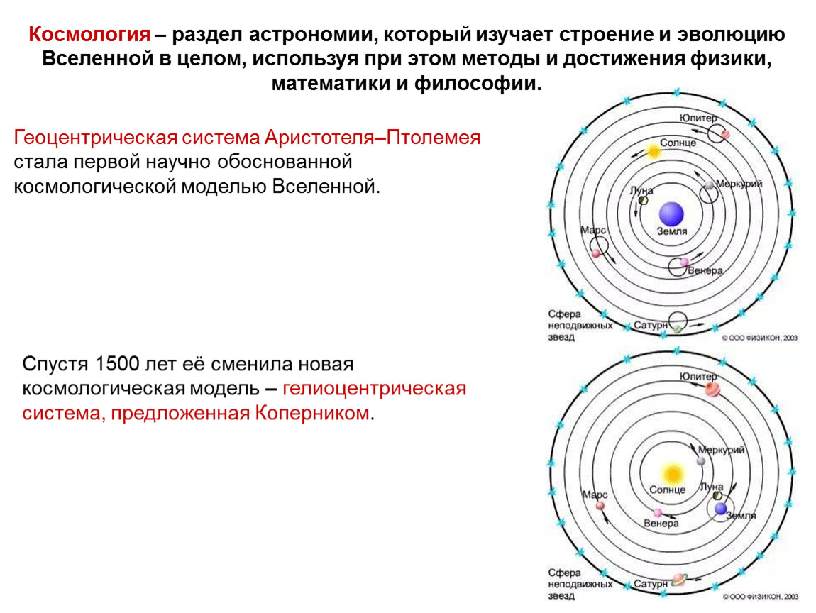 Геоцентрическая система Аристотеля–Птолемея стала первой научно обоснованной космологической моделью Вселенной.