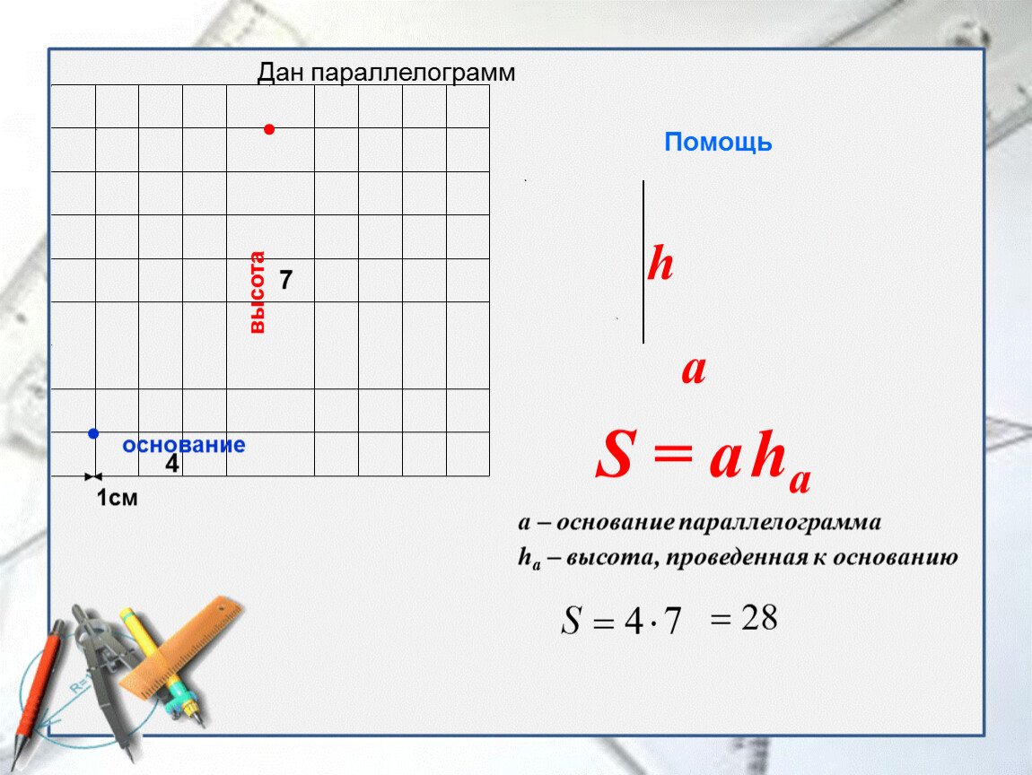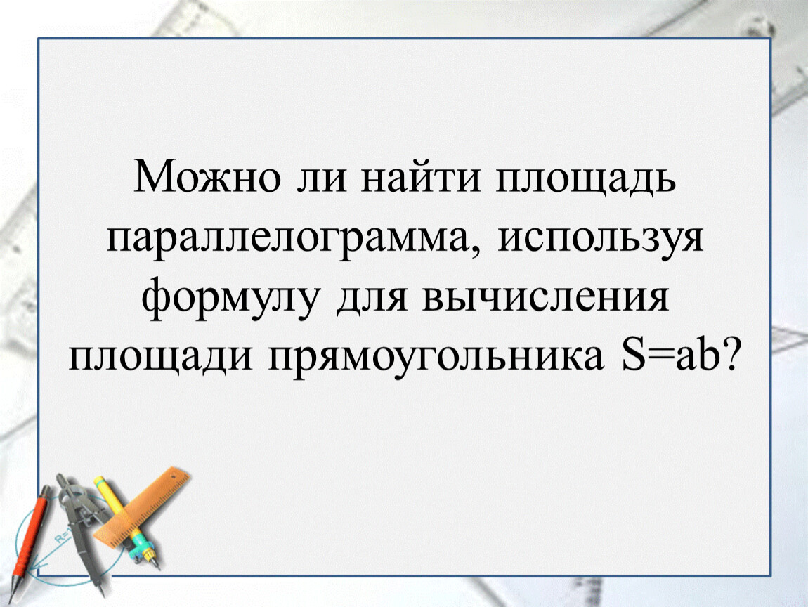 Можно ли найти площадь параллелограмма, используя формулу для вычисления площади прямоугольника S=ab?