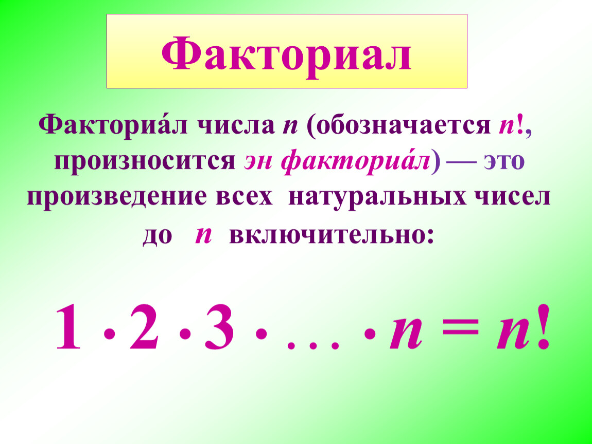 Факториа́л числа n (обозначается n!,