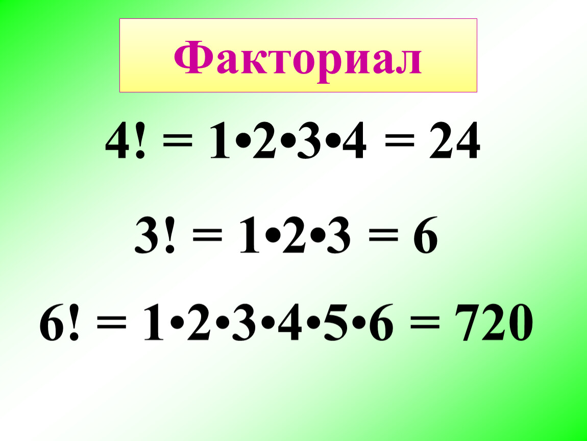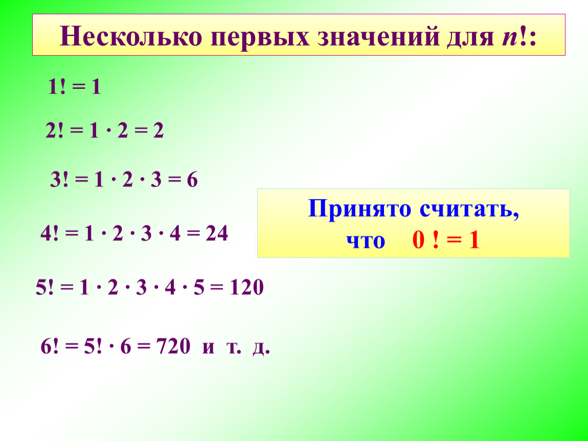 6! = 5! ∙ 6 = 720 и т. д.