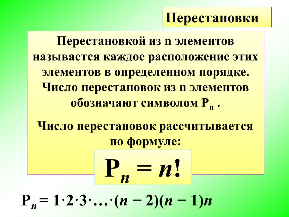 Число перестановок рассчитывается по формуле: