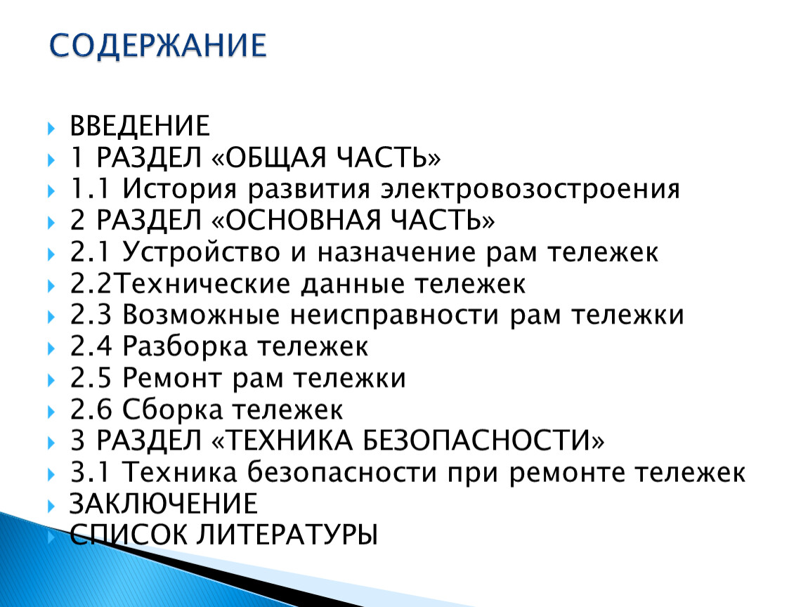 Во время выполнения письменной работы и при прохождении практики в локомотивном депо я детально изучил устройство тележки электровоза, ознакомился с технологическим процессом ремонта рам тележек, применяемым инструментом и оборудованием, требованиями техники безопасности при работе в цехах депо, которые я старался неукоснительно соблюдать.