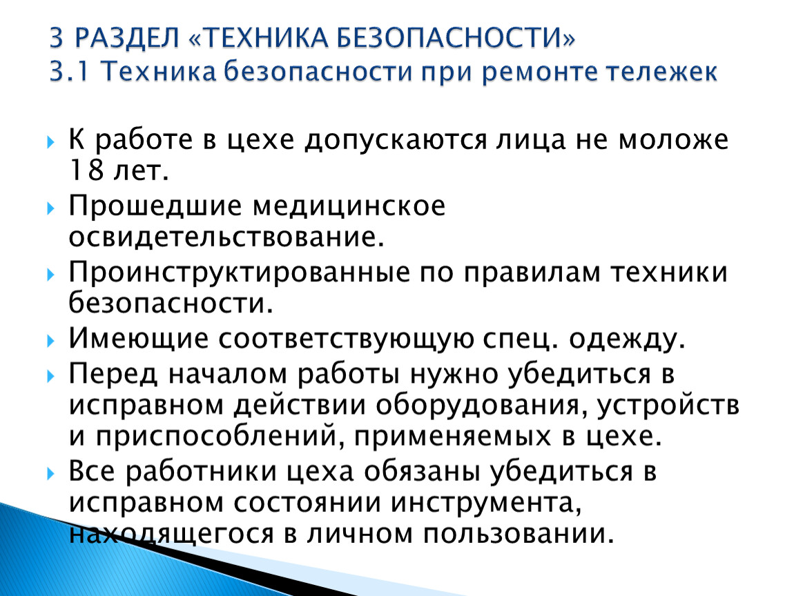 3 РАЗДЕЛ «ТЕХНИКА БЕЗОПАСНОСТИ»3.1 Техника безопасности при ремонте тележек