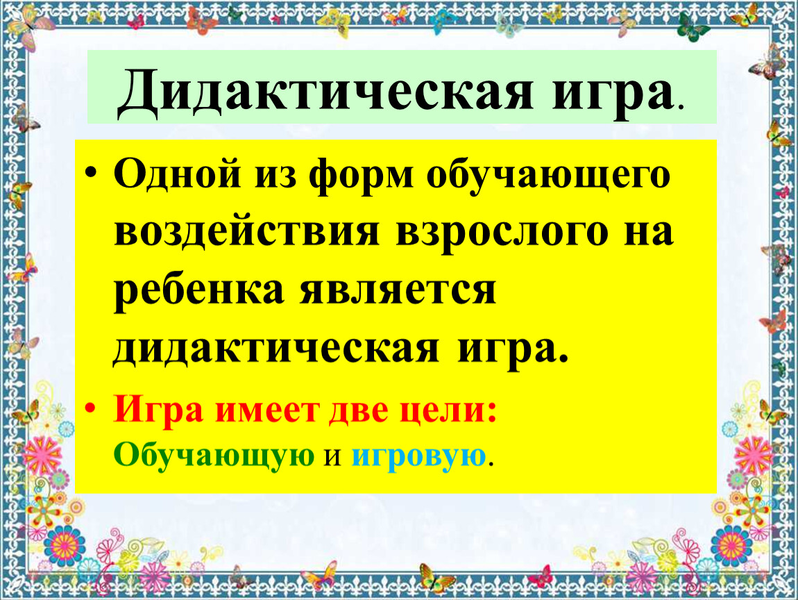Одной из форм обучающего воздействия взрослого на ребенка является дидактическая игра.