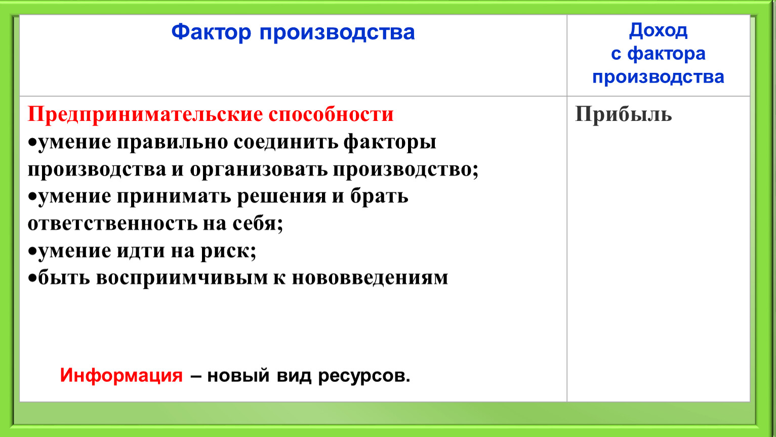 ЗЕМЛЯ, ТРУД, КАПИТАЛ, ИНФОРМАЦИЯ, ПРЕДПРИНИМАТЕЛЬСТВО