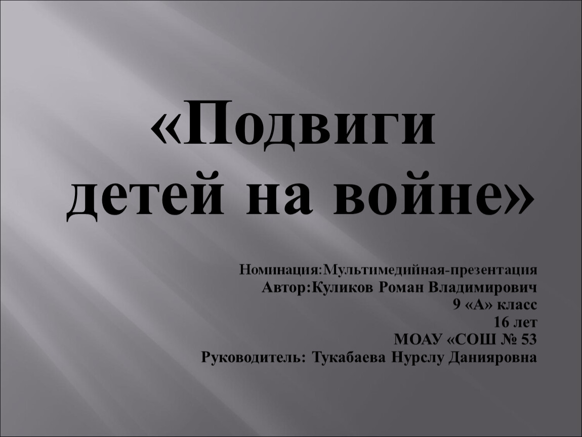 Дети воевали как взрослые на фронтах, в партизанских отрядах, в тылу.
