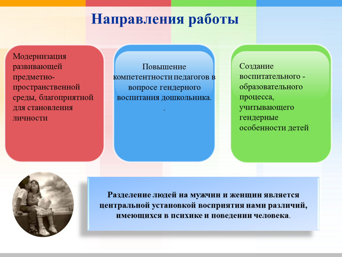 Создание воспитательного - образовательного процесса, учитывающего гендерные особенности детей