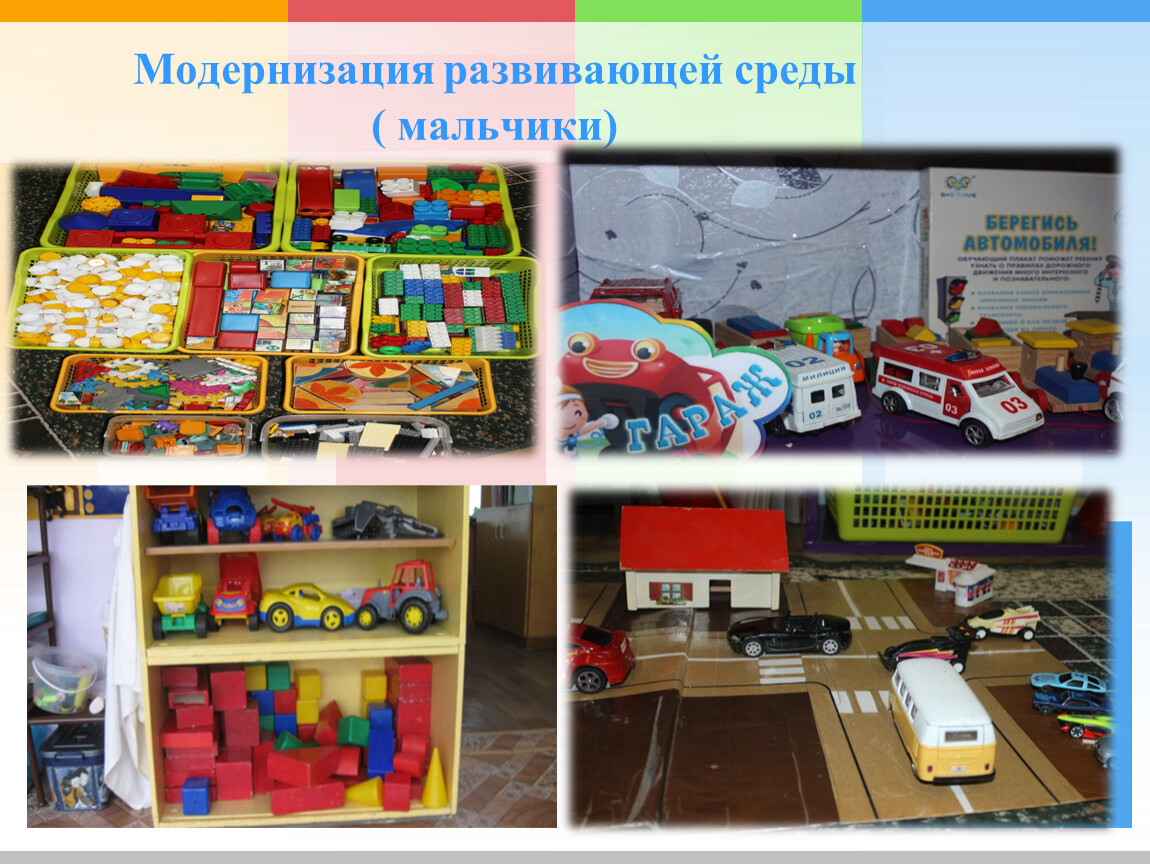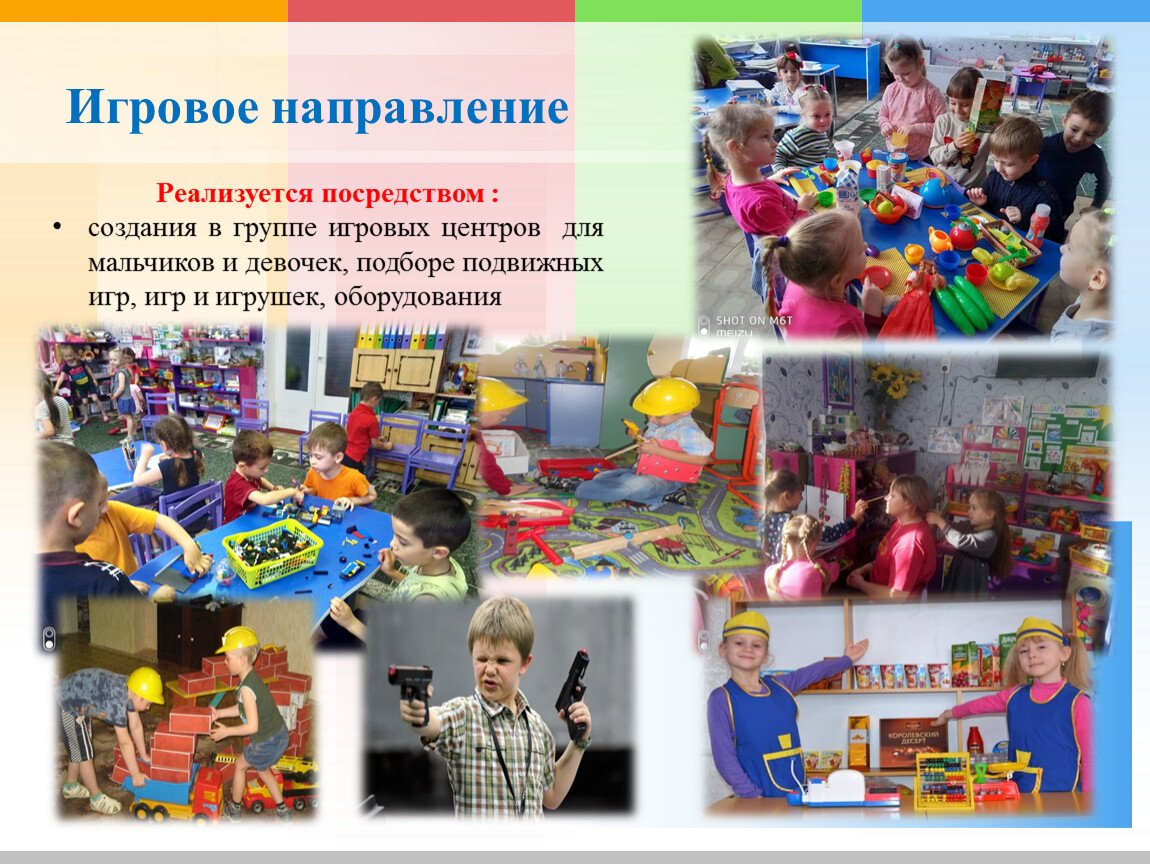 создания в группе игровых центров для мальчиков и девочек, подборе подвижных игр, игр и игрушек, оборудования