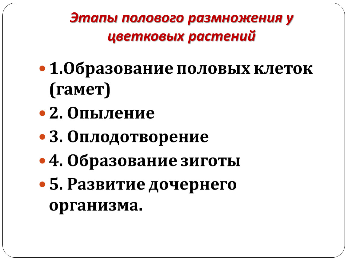 Этапы полового размножения у цветковых растений