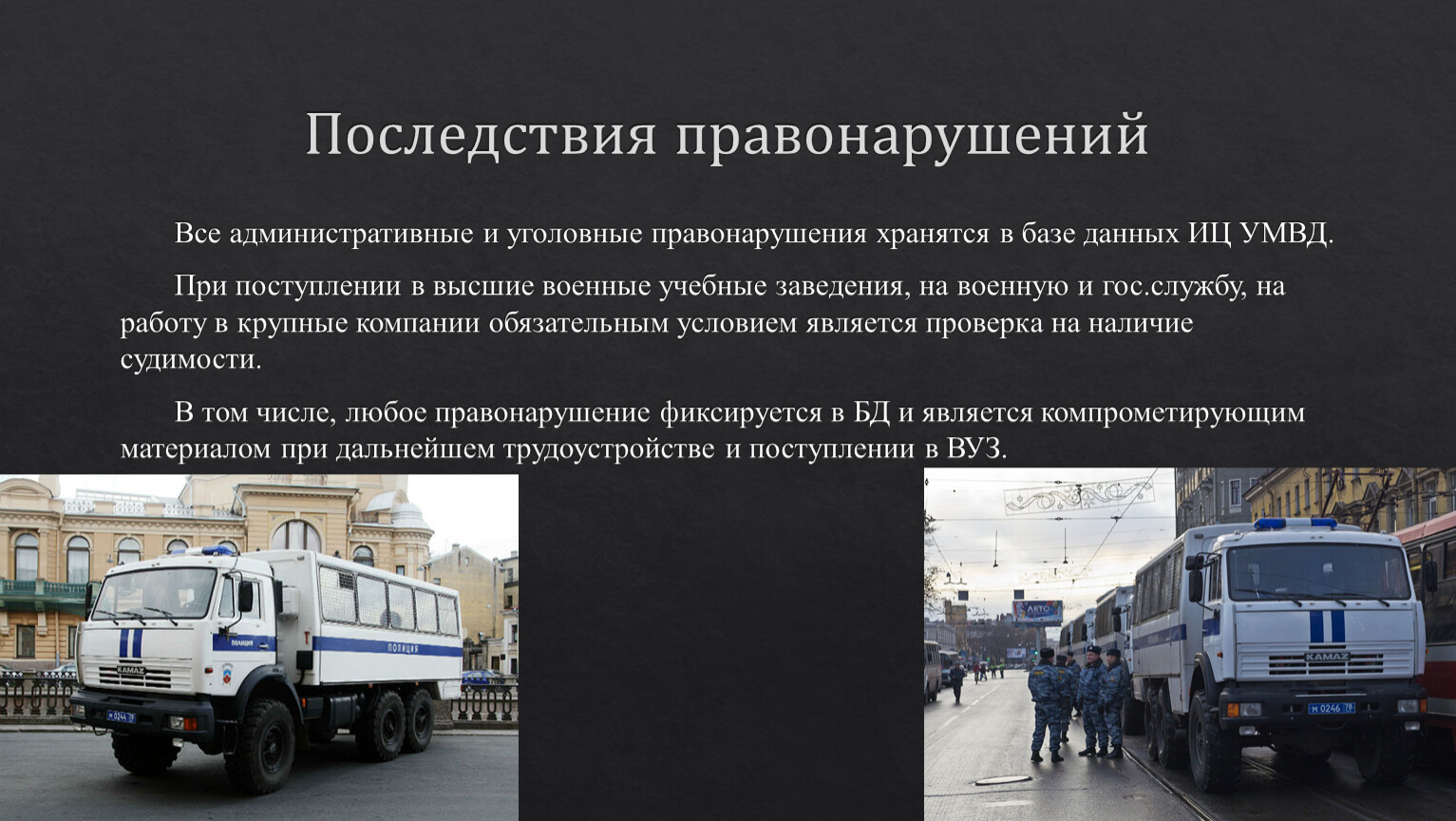 В том числе, любое правонарушение фиксируется в БД и является компрометирующим материалом при дальнейшем трудоустройстве и поступлении в ВУЗ.