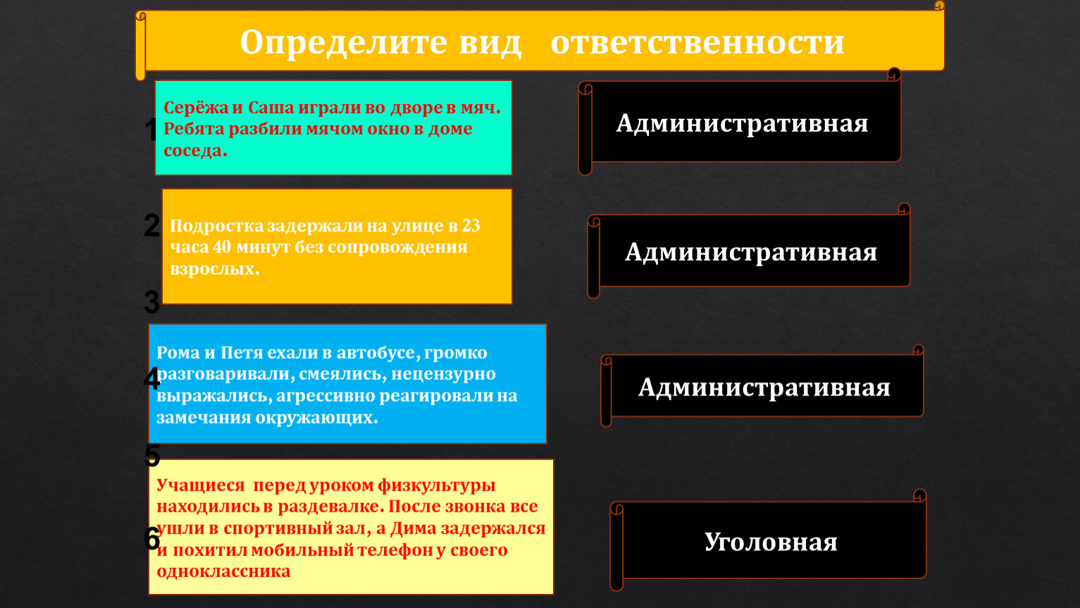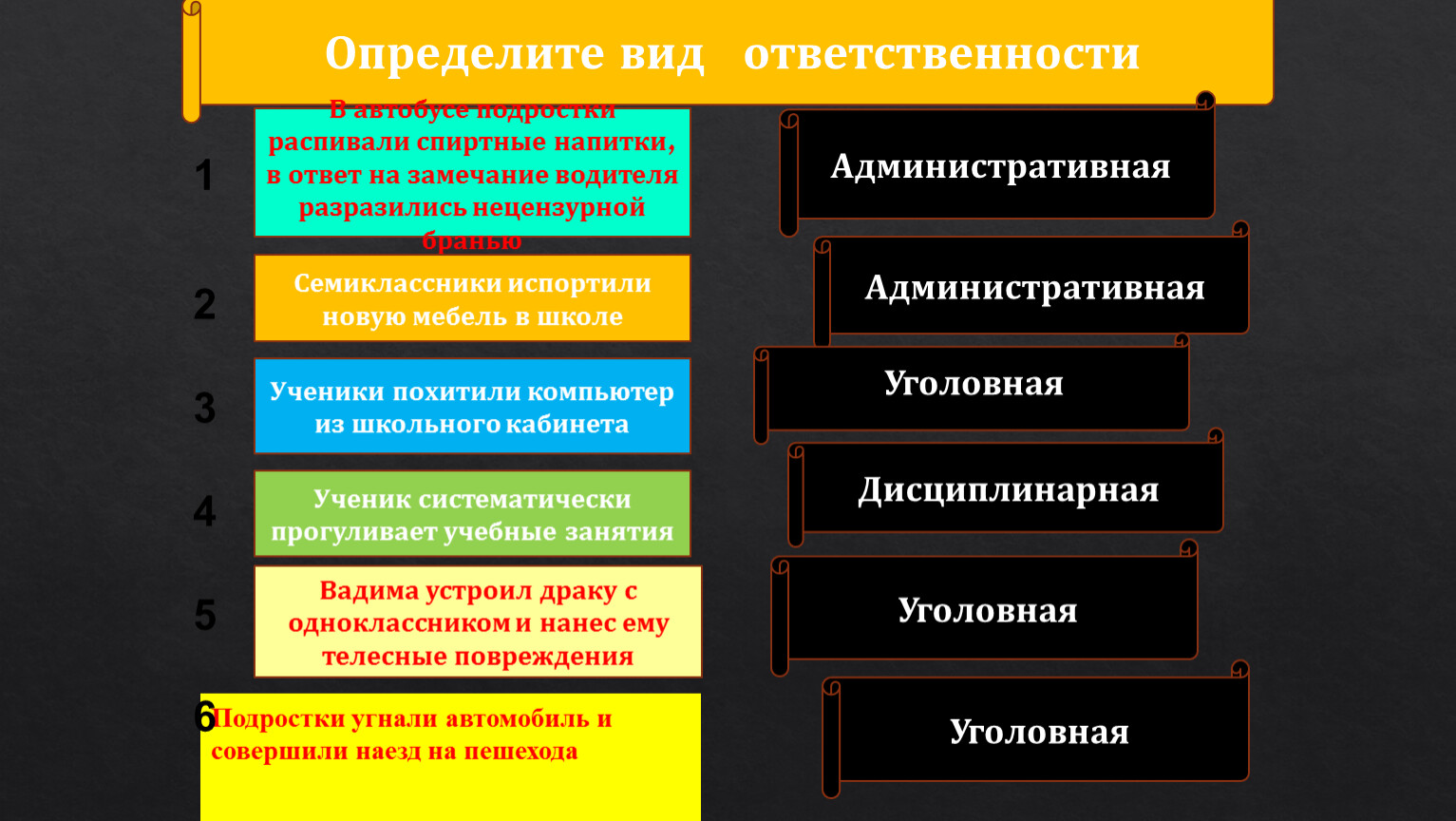 Определите вид ответственности