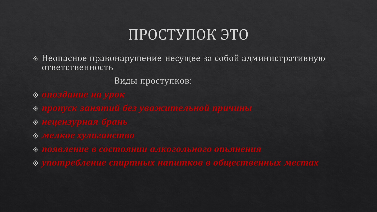 Виды проступков: