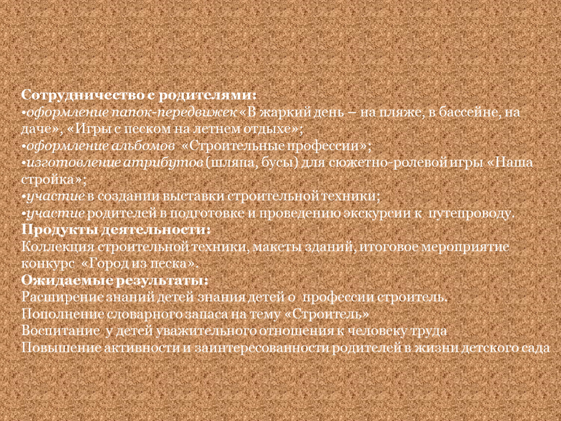 Расширение знаний детей знания детей о профессии строитель.