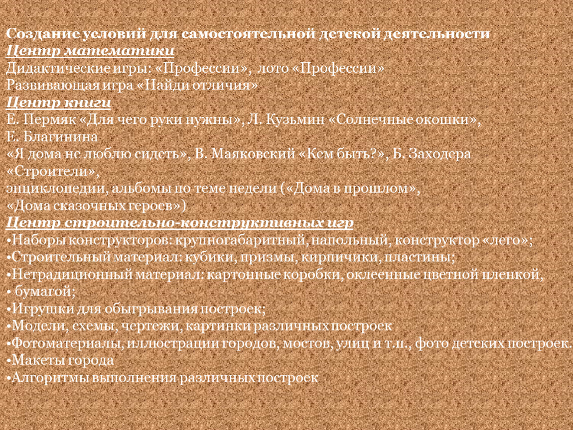Создание условий для самостоятельной детской деятельности