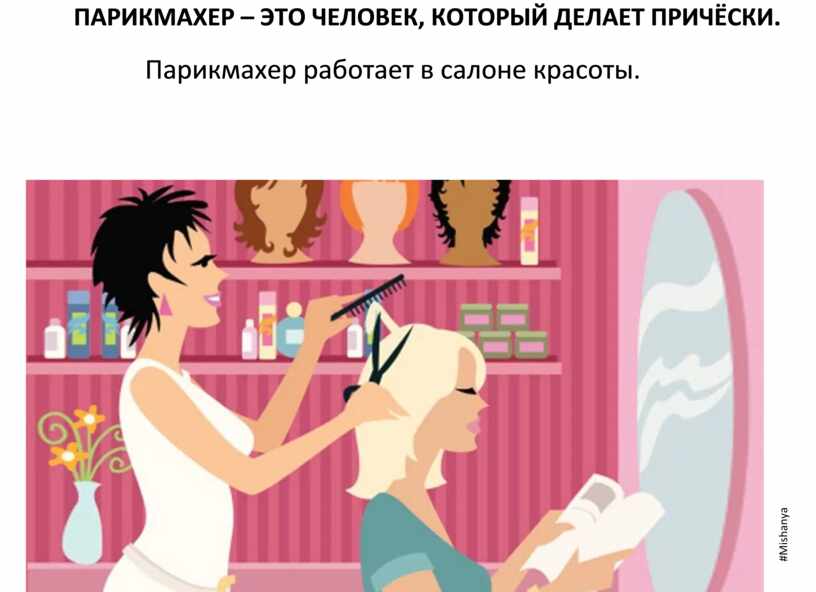 ПАРИКМАХЕР – ЭТО ЧЕЛОВЕК, КОТОРЫЙ ДЕЛАЕТ ПРИЧЁСКИ.