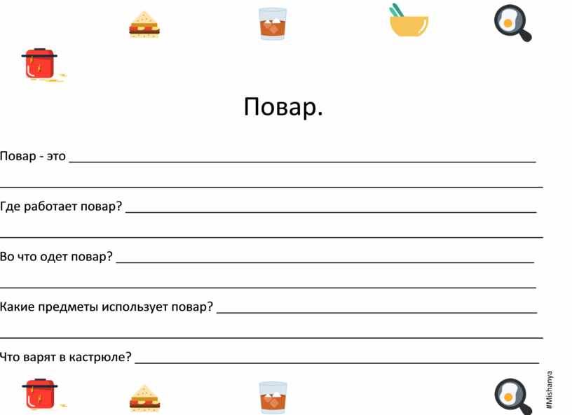______________________________________________________________________________ Где работает повар? ___________________________________________________________