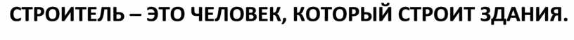 CТРОИТЕЛЬ – ЭТО ЧЕЛОВЕК, КОТОРЫЙ СТРОИТ ЗДАНИЯ.