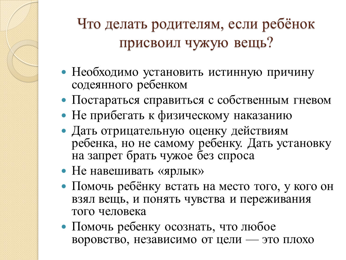 Помочь ребёнку встать на место того, у кого он взял вещь, и понять чувства и переживания того человека