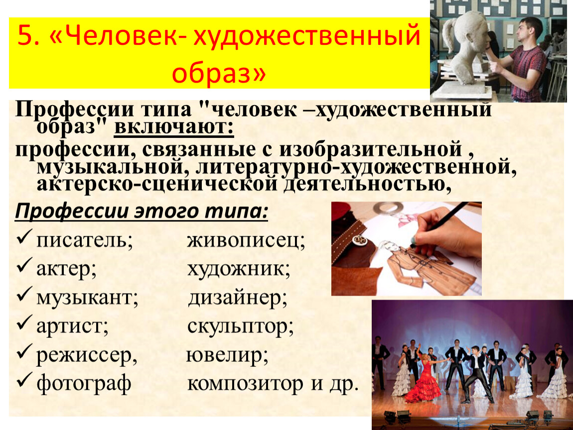 профессии, связанные с изобразительной , музыкальной, литературно-художественной, актерско-сценической деятельностью,