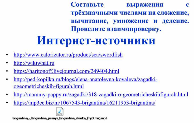 Составьте выражения с трёхзначными числами на сложение, вычитание, умножение и деление. Проведите взаимопроверку.