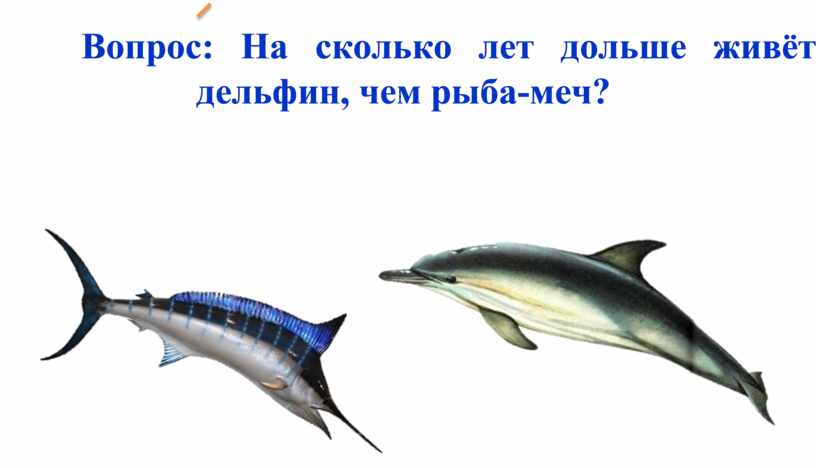 Вопрос: На сколько лет дольше живёт дельфин, чем рыба-меч?