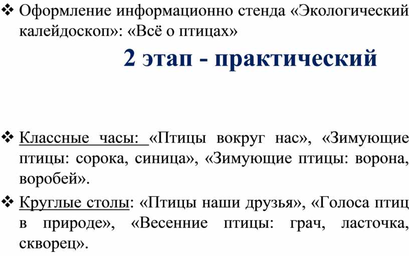v Оформление информационно стенда «Экологический калейдоскоп»: «Всё о птицах»