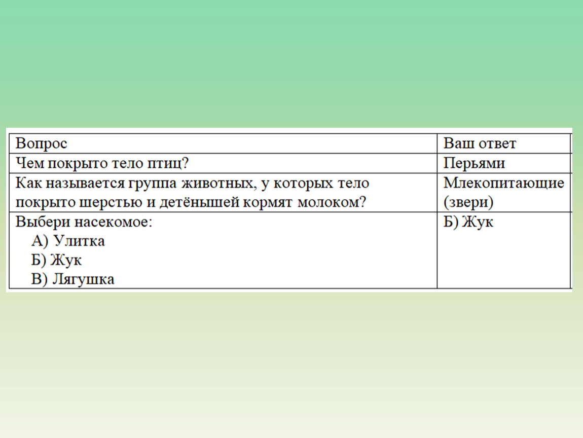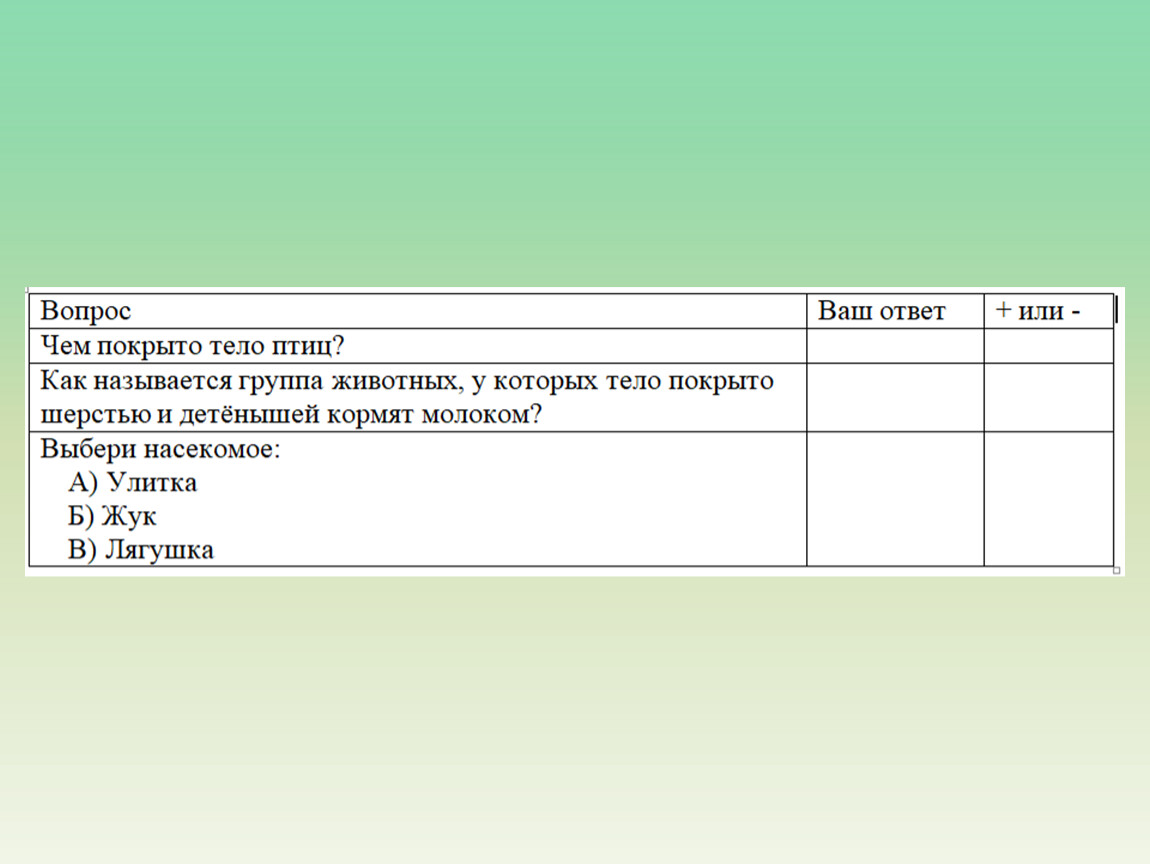 3. Применять полученные знания, определяя группу животного по его признакам.